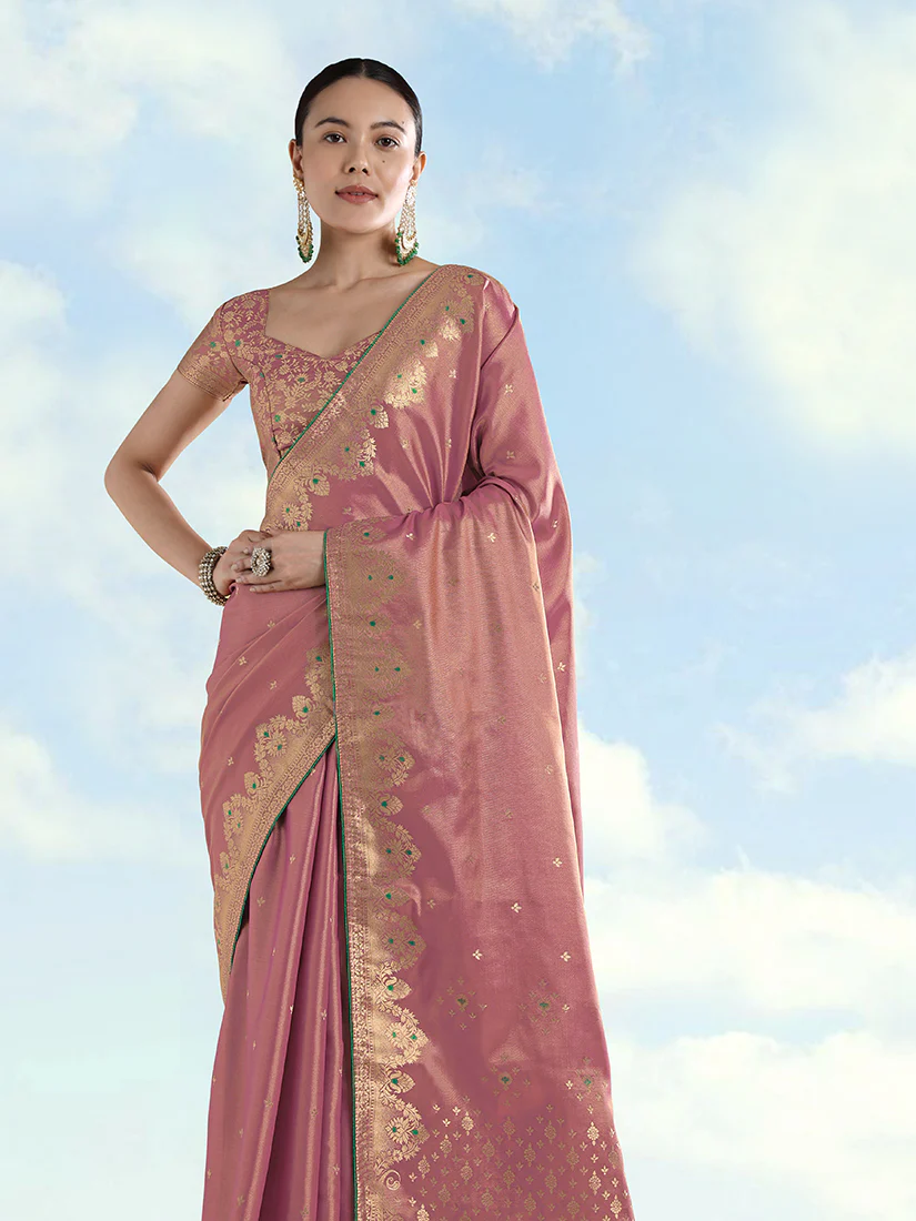 Monjolika Fashion Light Pink Color Paisley Zari Woven Banarasi Tissue Silk Saree