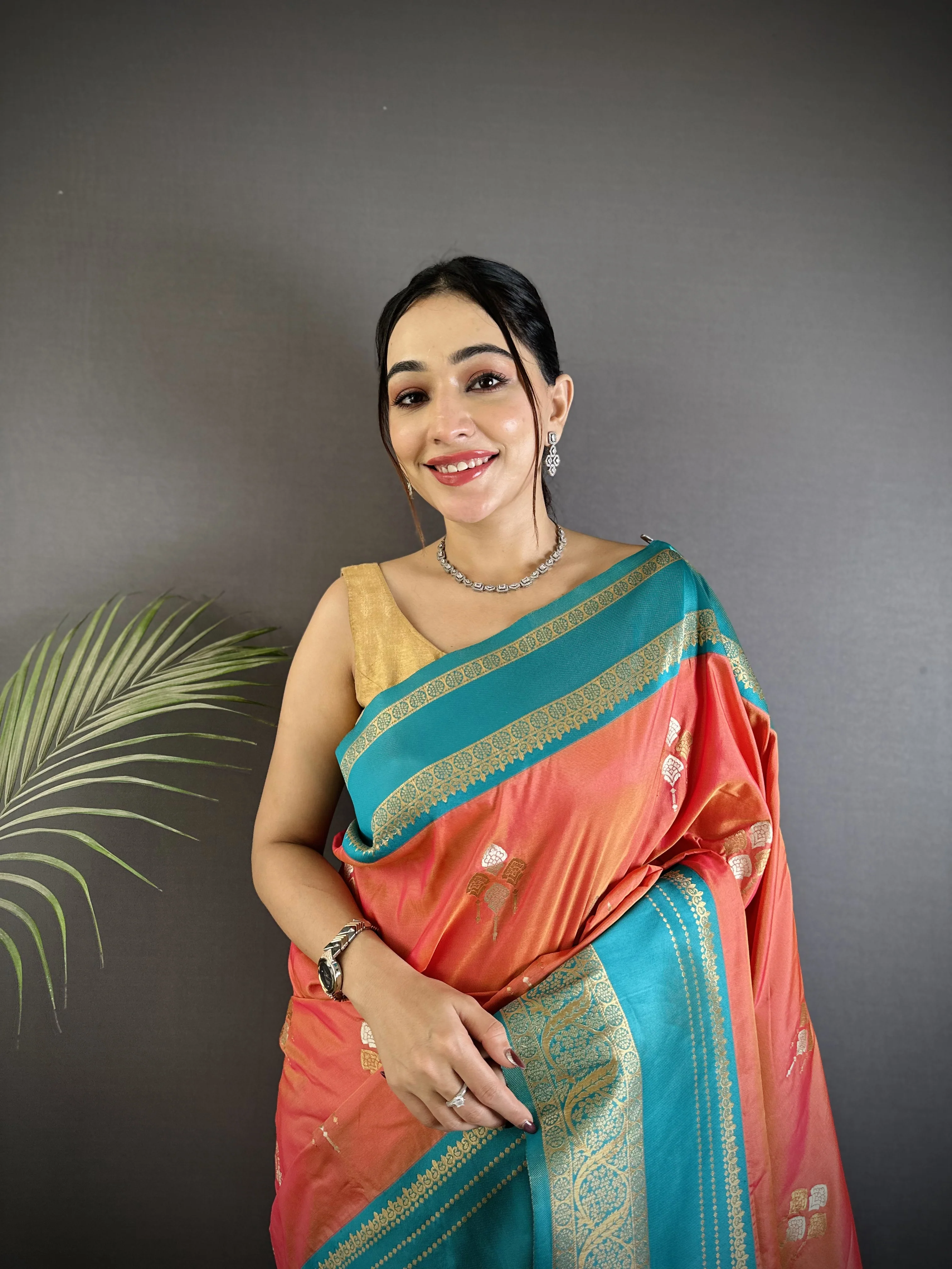-70%Sonakshi Women'S Peach Premium Soft Silk Zari Woven Traditional Saree With Blouse—